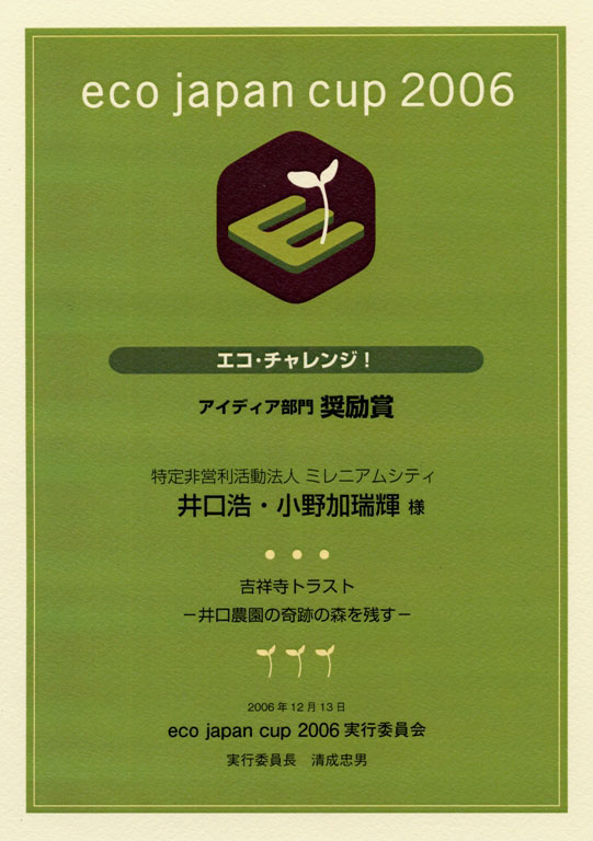 エコ・ジャパン・カップ2006 エコチャレンジに応募した「吉祥寺トラスト」が、アイデア部門で奨励賞をいただきました。