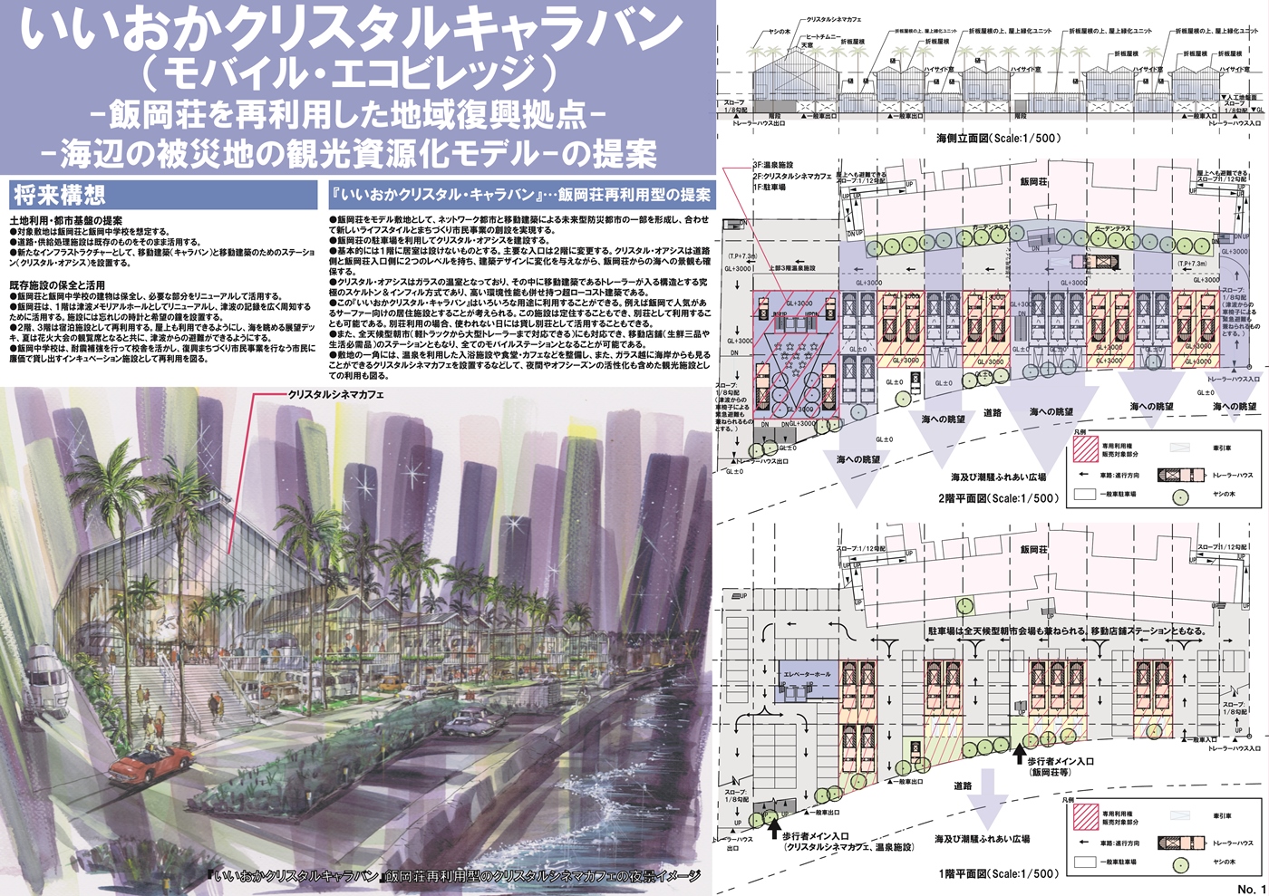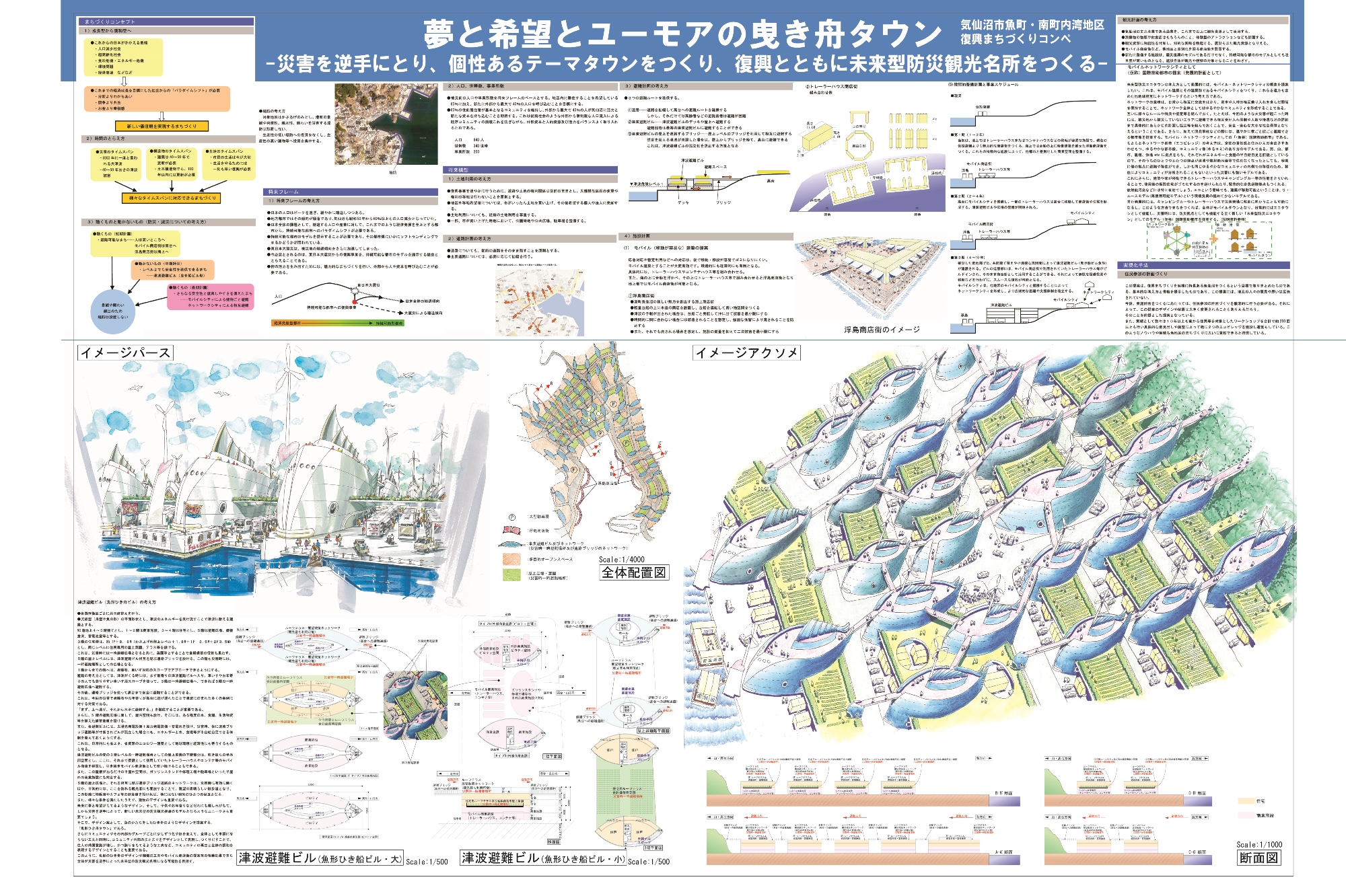 千葉県旭市と宮城県気仙沼市において行われた、復興コンペに参加しました。(画像をクリックすると拡大図をご覧いただけます)